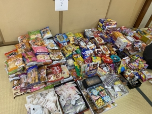 〇 たくさんの食料や雑貨をいただき、とても嬉しかったです!お餅や緑茶や化粧品など、自分では買うのをためらってしまうものがたくさん入っていたので本当に嬉しかったです。子供たちも帰りの車の中で、さっそくと頂いたプレゼントの包を破ってチョコレートや絵本に喜んでいました!