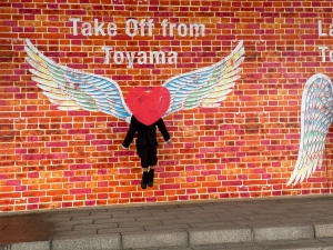 場所は、環水公園。昨年はお天気に恵まれ、満開の桜、噴水の水、緑の芝生、すべてがきらきら輝くすばらしい環境での撮影でしたが、今年は雨ふりで、桜もほとんどが散り、寒い日の撮影になりました。